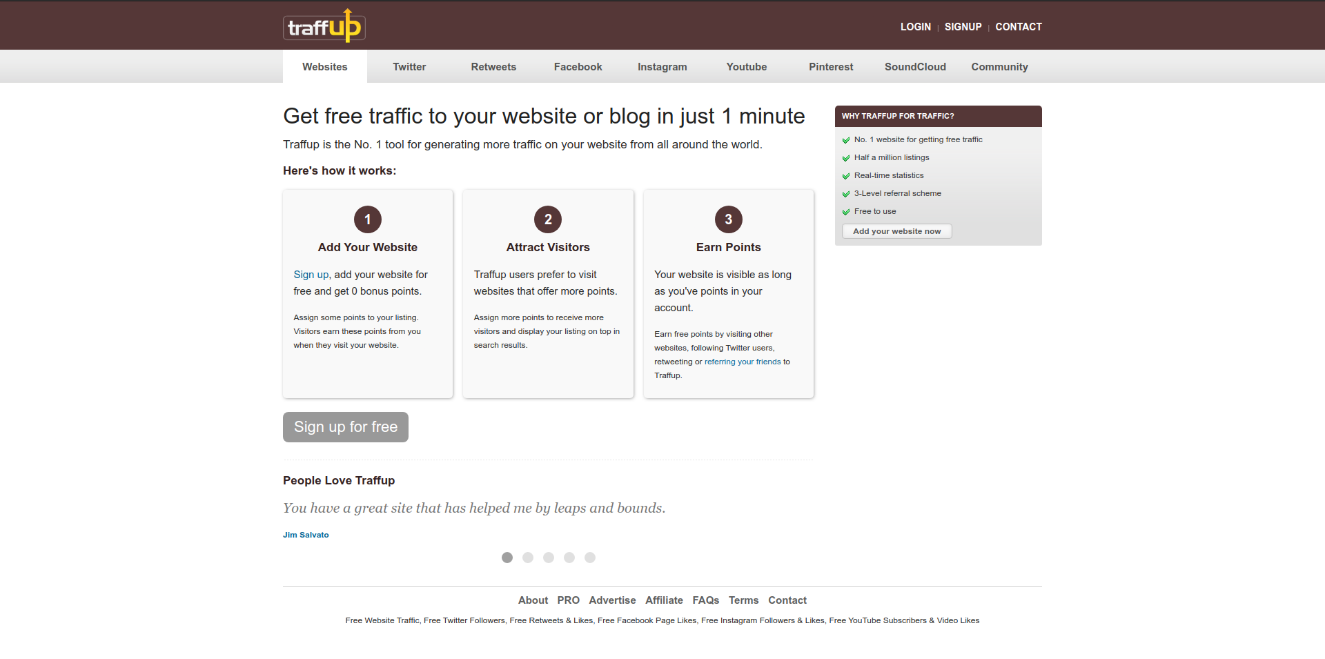 TraffUp is one of the most traditional services in the industry, it works basically like all other sites of this type, you will perform engagement actions on other people's profiles and websites and you will earn points to create your own engagement campaigns.