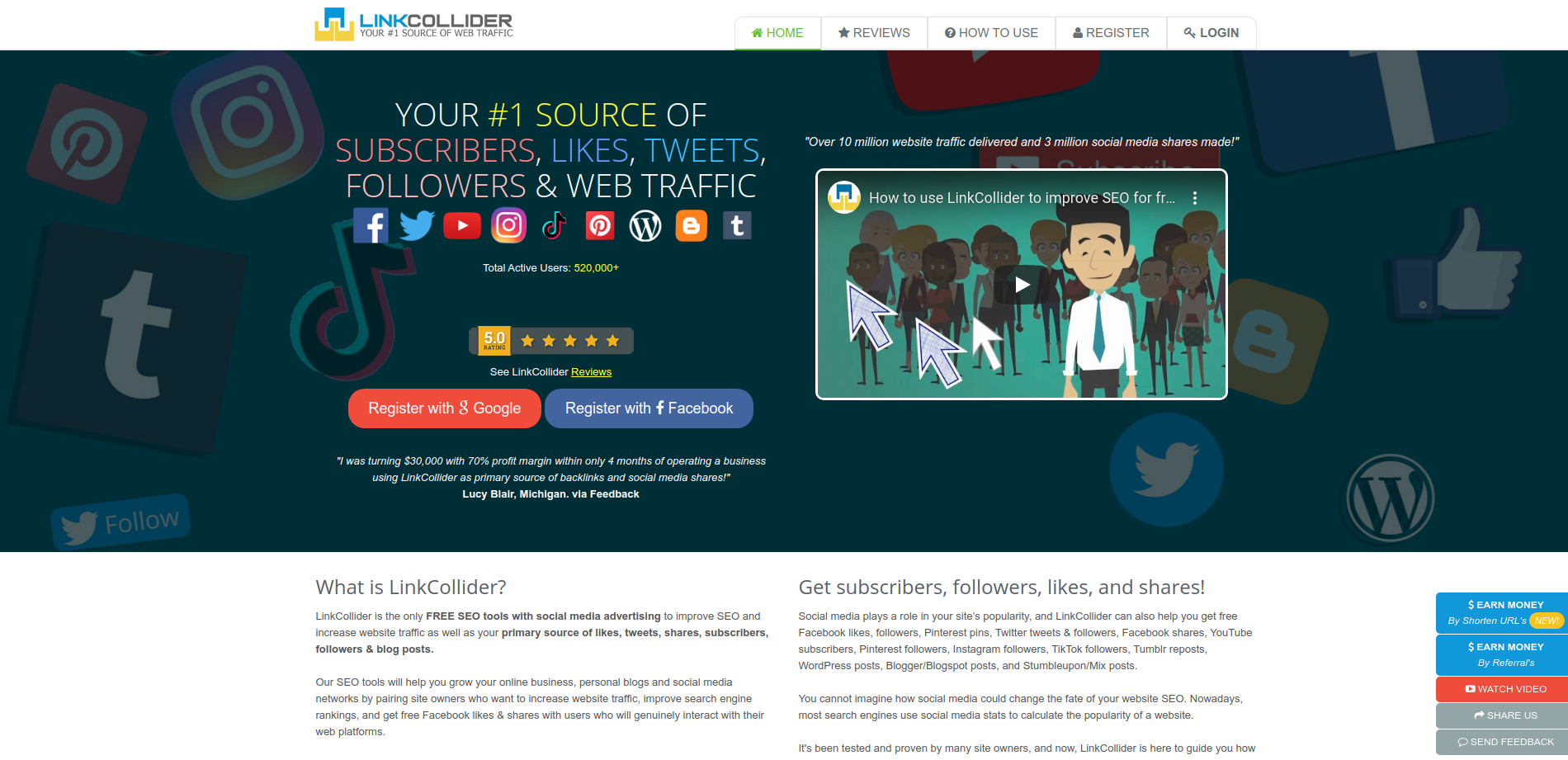 The biggest advantage of LinkCollider in relation to its competitors is that instead of providing engagement for your link one social network at a time, it does all the work of SEO and optimization, when submitting a link it will be served on all platforms of a time, for example, your site will be shared both on Facebook, Instagram, Twitter and user blogs at once.
